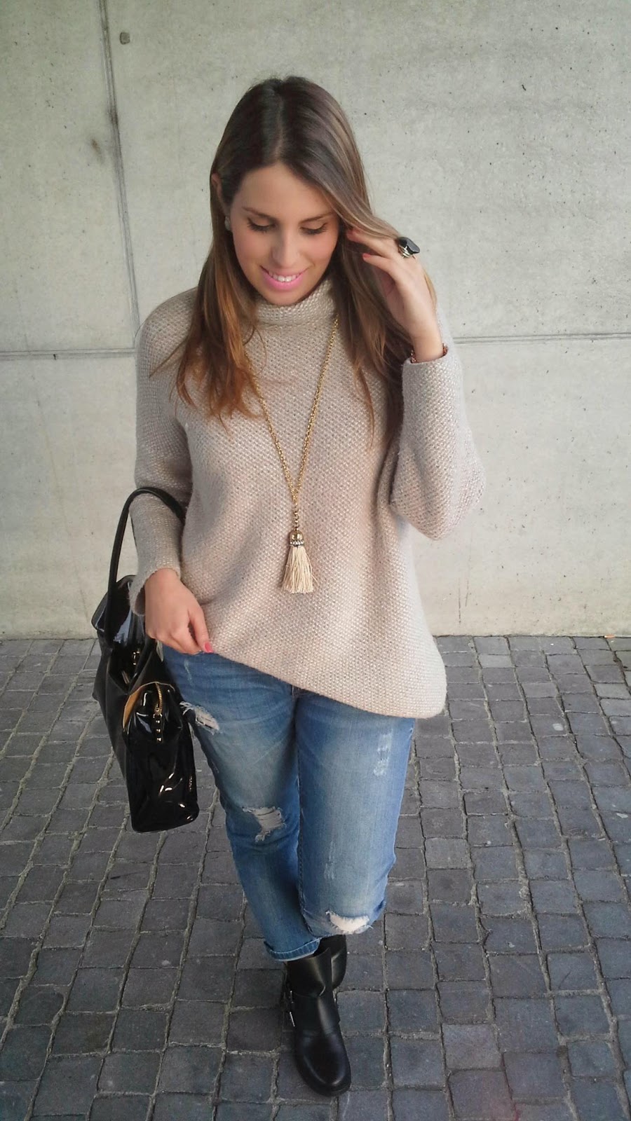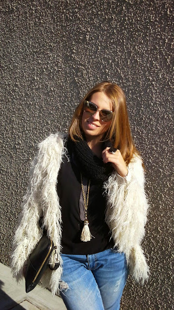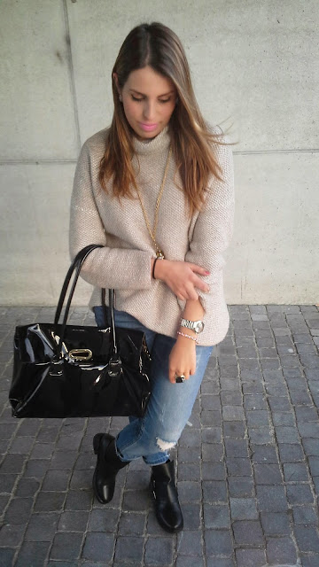 Um exemplo disso é esta saia e mais duas, uma cinzenta e uma preta, que vieram morar cá para casa a 3€ cada uma. Talvez outra pessoa qualquer tivesse passado e andado sem olhar para as saias mas eu e a minha mãe já não as deixamos escapar. E digam lá, não ficou um espetáculo combinada com as peças certas?