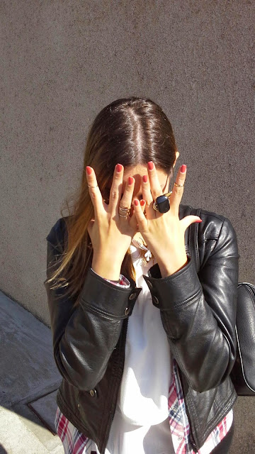 Anel Pedra: Avelina Correia Artesanato | Anel Falange: H&M | Brincos: Bijou Brigitte | Camisola: Zara | Saia: Comércio Local | Sapatos: Showroomprive | Mala: Papaya na Papelaria Inédita | Relógio Swatch