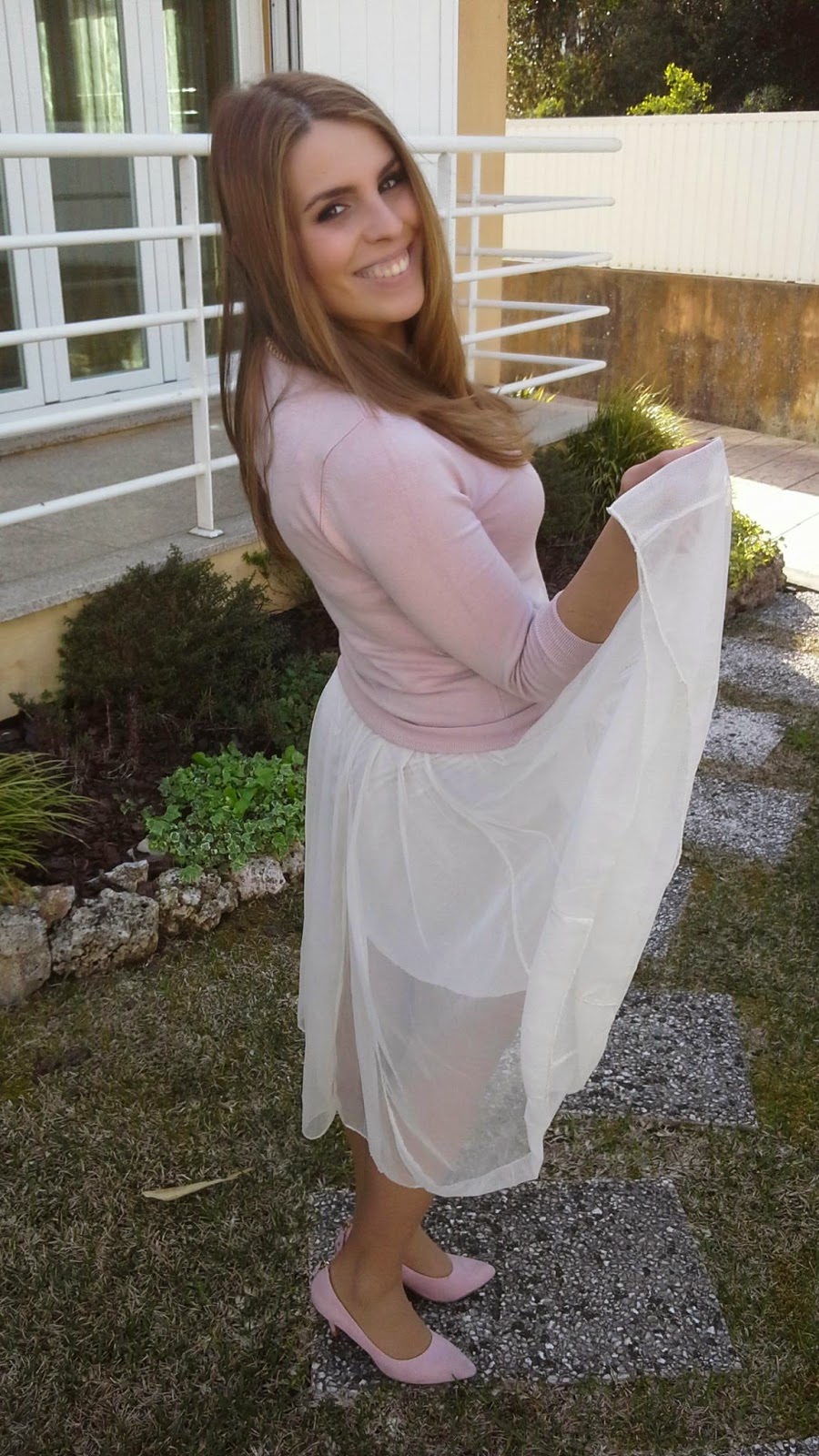 Um exemplo disso é esta saia e mais duas, uma cinzenta e uma preta, que vieram morar cá para casa a 3€ cada uma. Talvez outra pessoa qualquer tivesse passado e andado sem olhar para as saias mas eu e a minha mãe já não as deixamos escapar. E digam lá, não ficou um espetáculo combinada com as peças certas?
